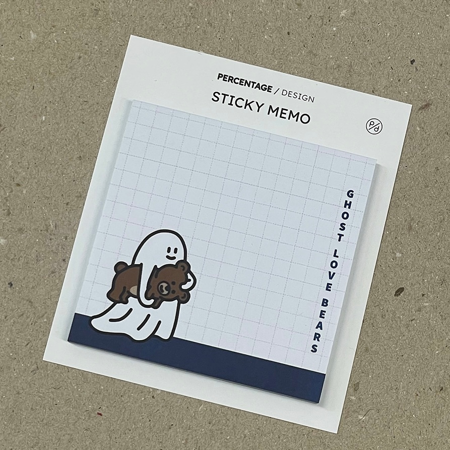 くまを抱えたゆうれいがかわいい付箋タイプのメモです。
