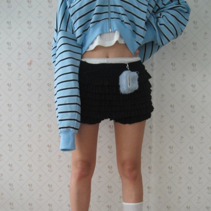 ストライプの裏地が可愛いミニキーリングポーチです。