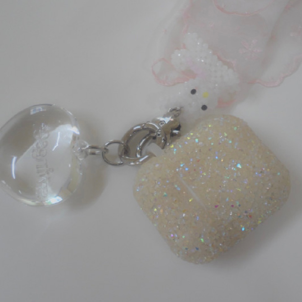 小さいサイズのバッグ、Airpods、財布などつけるだけでポイントになります。