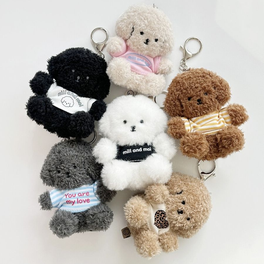 ミルアンドモイで愛されている子犬のキャラクターたちが人形キーリングで作られました。