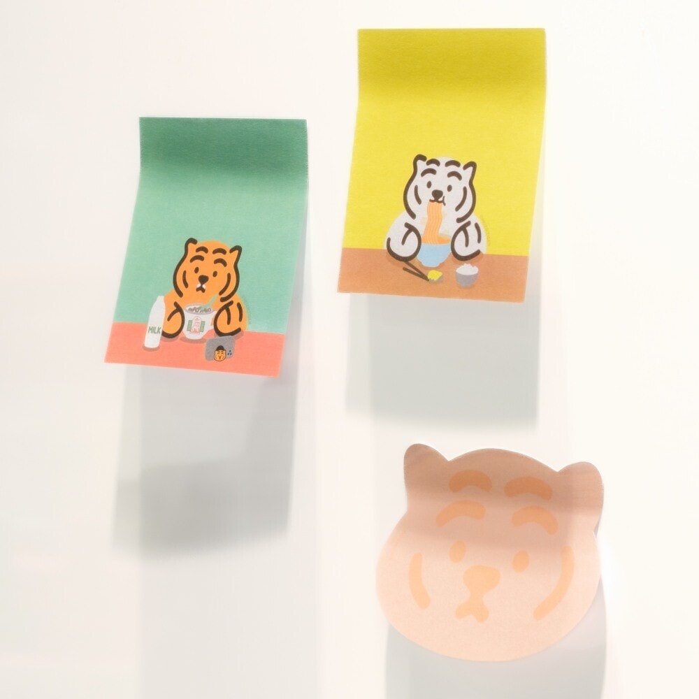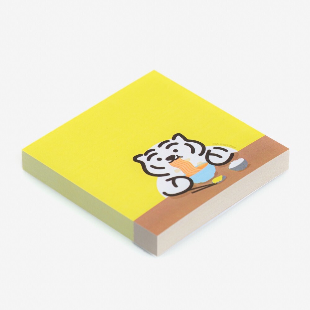 ラーメンを食べるトラがかわいい付箋タイプのメモパッド。