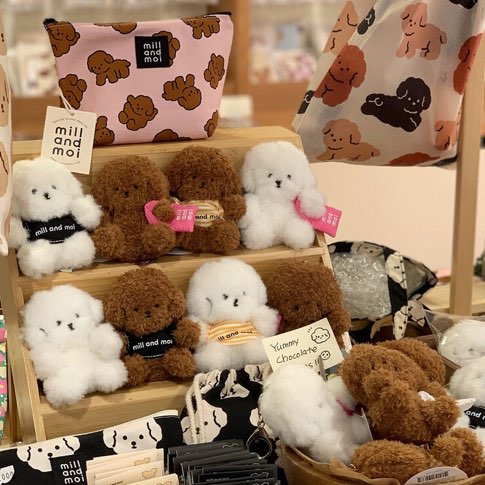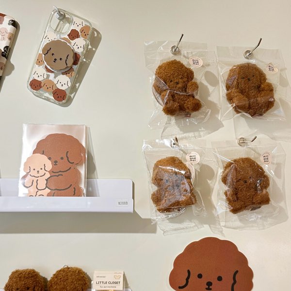 ミルアンドモイで愛されている子犬のキャラクターたちが人形キーリングで作られました。