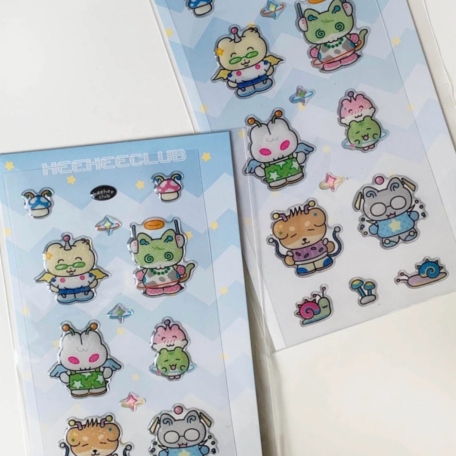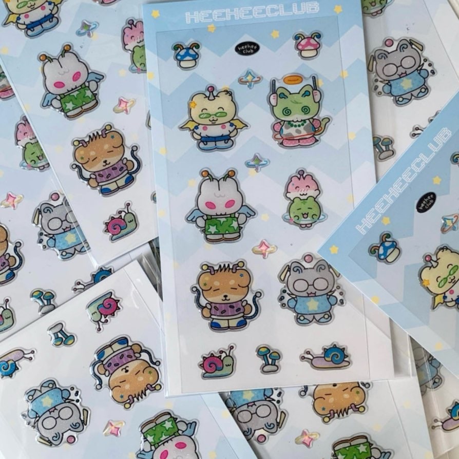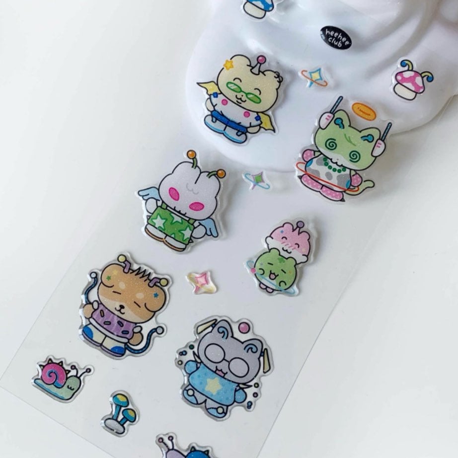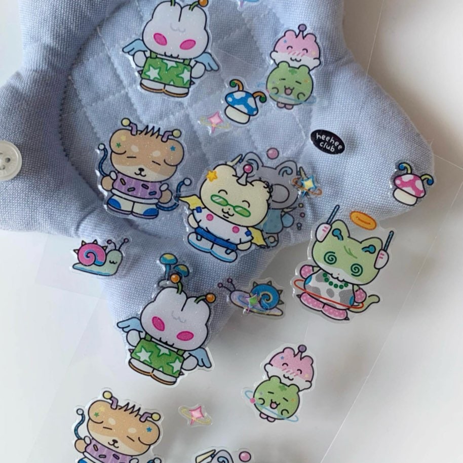 heeheeclubのイラストで制作されたぷくぷくと立体的なエポキシステッカーです。