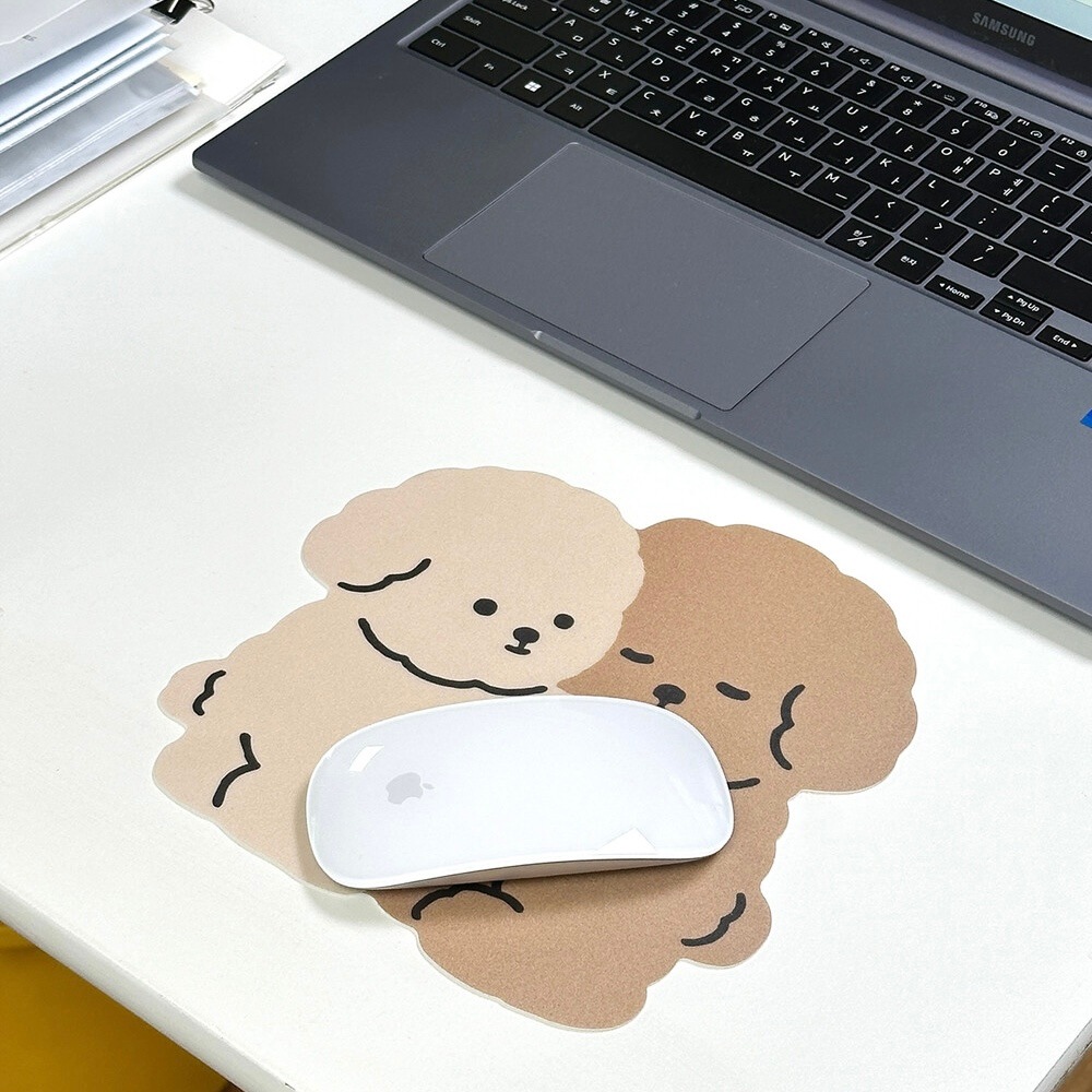 かわいい2匹のプードルがハグしているマウスパッドです。